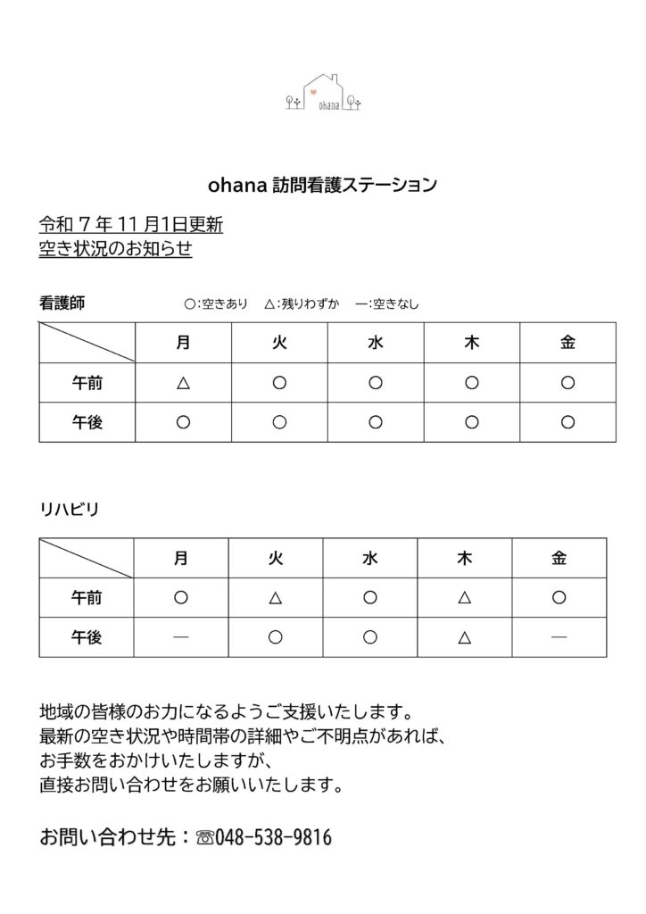 令和7年11月1日現在 訪問看護、リハビリの空き状況です。